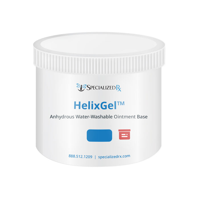 HelixGel™ is a soft, opaque, water-washable anhydrous ointment base that is ideal for easy cleaning, moisturizing, and incorporating APIs. This proprietary formula synergistically blends Meadowsweet Flower Extract (Spiraea Ulmaria) and Yarrow Flower Extract (Achillea Millefolium), known for their astringent, antiseptic, anti-inflammatory, and antispasmodic properties, which can assist in wound healing. This anhydrous base also includes zinc acetate, known for its well-documented benefits in reducing inflammation and its styptic properties. As an added benefit, HelixGel™ is formulated with allantoin, known for regulating inflammation, stimulating fibroblast proliferation, and enhancing extracellular matrix synthesis, ultimately encouraging faster and more effective skin regeneration. This gel readily adheres to the skin, providing an easily water-washable, occlusive, moist environment that promotes optimal wound/burn healing, reduces pain, and promotes collagen production at the application site.